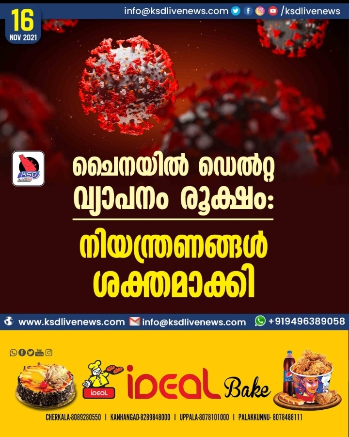 ചൈനയിൽ ഡെൽറ്റ വ്യാപനം രൂക്ഷമാകുന്നു. നവംബർ നാലിനാണ് ഇവിടെ ആദ്യ കേസ് റിപ്പോർട്ട് ചെയ്തത്. ഒരു ദിവസം ശരാശരി 24 പുതിയ കേസുകൾ കണ്ടെത്തുന്നുണ്ട്.ദലിയാനിന് സമീപമുള്ള ദൻഡോംഗ്, അൻഷൻ, ഷെനിയാംഗ് എന്നിവിടങ്ങളിൽ എത്തുന്നവർക്ക് 14 ദിവസത്തെ നിർബന്ധിത ക്വാറന്റൈൻ ഏർപ്പെടുത്തി.ഇത് കൂടാതെ, വ്യാപനം കൂടുതലുള്ള പ്രദേശങ്ങളിൽ വിനോദ സഞ്ചാരത്തിനും പൊതുഗതാഗതത്തിനും നിയന്ത്രണം ഏർപ്പെടുത്തി.ചൈനയുടെ വടക്കുകിഴക്കൻ പ്രദേശത്താണ് ഡെൽറ്റ വ്യാപനം രൂക്ഷമായത്. ഒക്ടോബർ 17നും നവംബർ 14 നും ഇടയിൽ 1,300 ലേറെ പേർക്കാണ് സമ്പർക്കം വഴി കൊവിഡ് ബാധിച്ചത്.ഔദ്യോഗിക കണക്കുകൾ പ്രകാരം നേരത്തേ 1,280 ഡെൽറ്റ കേസുകളും ചൈനയിൽ സ്ഥിരീകരിച്ചിട്ടുണ്ട്. ചൈനയിലെ 21 ഓളം പ്രവിശ്യകളും നഗരങ്ങളും ഡെൽറ്റ ഭീഷണിയിലാണ്.