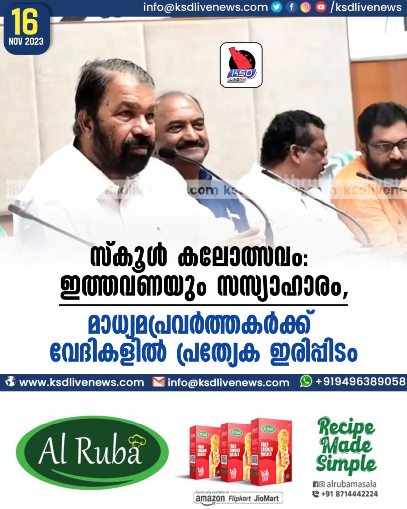 സ്കൂള് കലോത്സവം: ഇത്തവണയും സസ്യാഹാരം, മാധ്യമപ്രവര്ത്തകര്ക്ക് വേദികളില് പ്രത്യേക ഇരിപ്പിടം
