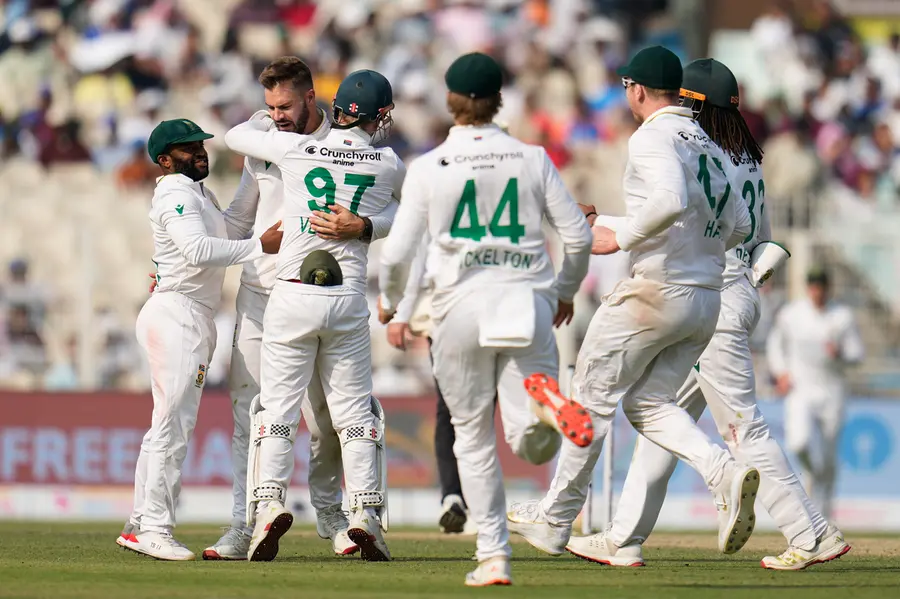 കൊല്ക്കത്ത: ഈഡന് ഗാര്ഡന്സില് ദക്ഷിണാഫ്രിക്കയെ വീഴ്ത്താന് ഒരുക്കിയ പിച്ചില് കറങ്ങി വീണ് ഇന്ത്യ. പരമ്പരയിലെ ഒന്നാം ടെസ്റ്റില് 30 റണ്സിന്റെ നാണംകെട്ട തോല്വിയാണ് ഇന്ത്യ വഴങ്ങിയത്. ദക്ഷിണാഫ്രിക്ക ഉയര്ത്തിയ 124 റണ്സ് വിജയലക്ഷ്യം പിന്തുടര്ന്ന ഇന്ത്യ 93 റണ്സിന് കൂടാരം കയറി. നാലു വിക്കറ്റ് വീഴ്ത്തിയ സൈമണ് ഹാര്മറും രണ്ടു വിക്കറ്റ് വീതം വീഴ്ത്തിയ മാര്ക്കോ യാന്സനും കേശവ് മഹാരാജും ചേര്ന്നാണ് ഇന്ത്യയുടെ കഥകഴിച്ചത്. ഇതോടെ പരമ്പരയില് ദക്ഷിണാഫ്രിക്ക മുന്നിലെത്തി (1-0).