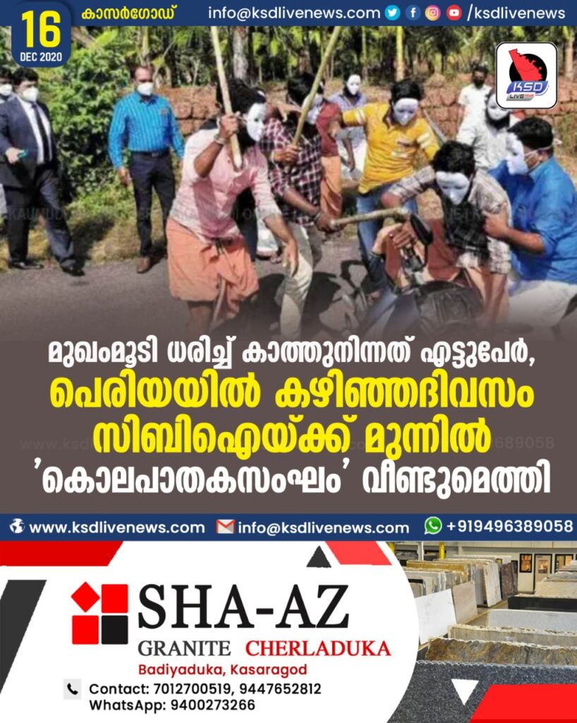 മുഖംമൂടി ധരിച്ച് കാത്തുനിന്നത് എട്ടുപേർ , പെരിയയിൽ കഴിഞ്ഞദിവസം സിബിഐയ്ക്ക് മുന്നിൽ ‘ കൊലപാതകസംഘം ‘ വീണ്ടുമെത്തി
