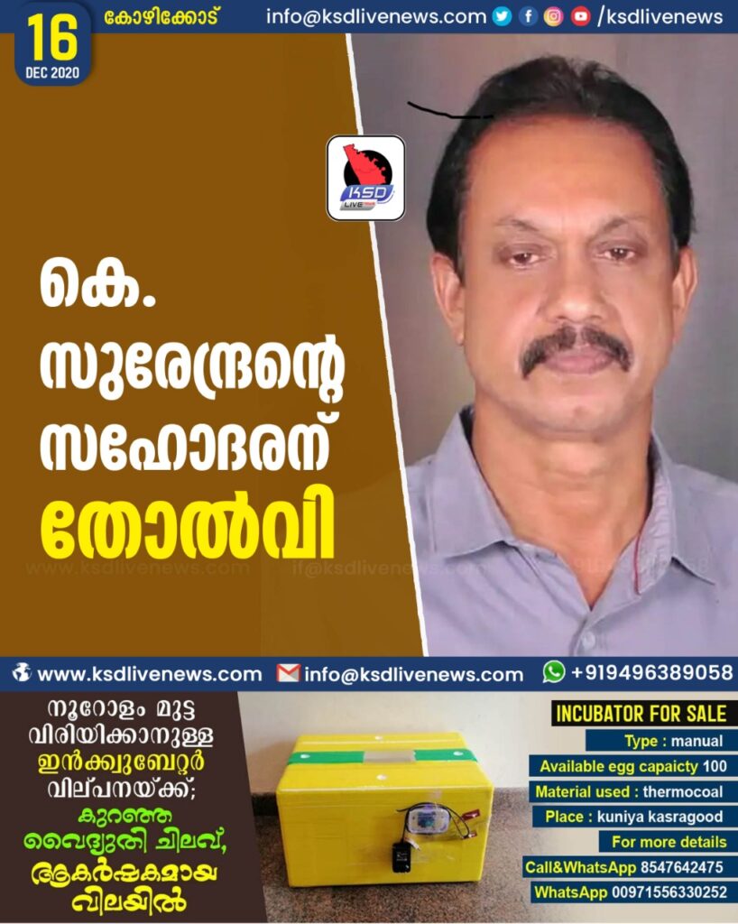 കെ. സുരേന്ദ്രന്റെ സഹോദരന് തോല്വി