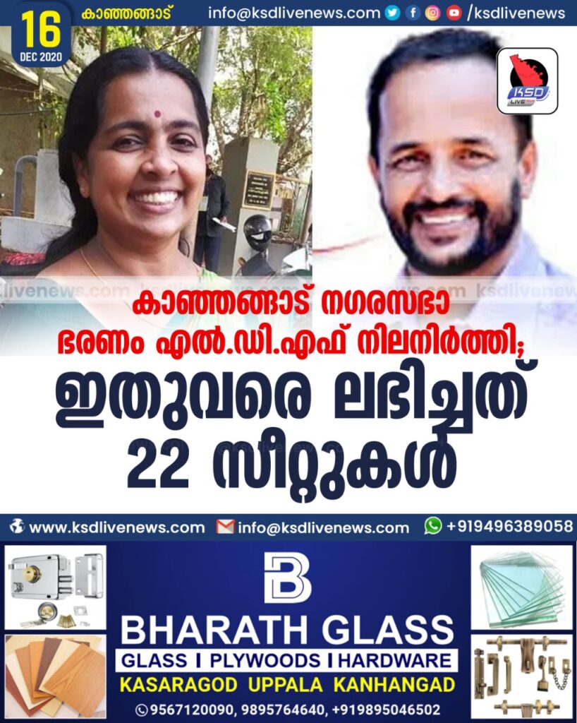 കാഞ്ഞങ്ങാട് നഗരസഭാ ഭരണം എല്.ഡി.എഫ് നിലനിര്ത്തി; ഇതുവരെ ലഭിച്ചത് 22 സീറ്റുകള്