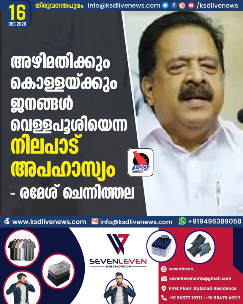 അഴിമതിക്കും കൊള്ളയ്ക്കും ജനങ്ങള്‍ വെള്ളപൂശിയെന്ന നിലപാട് അപഹാസ്യം രമേശ് ചെന്നിത്തല