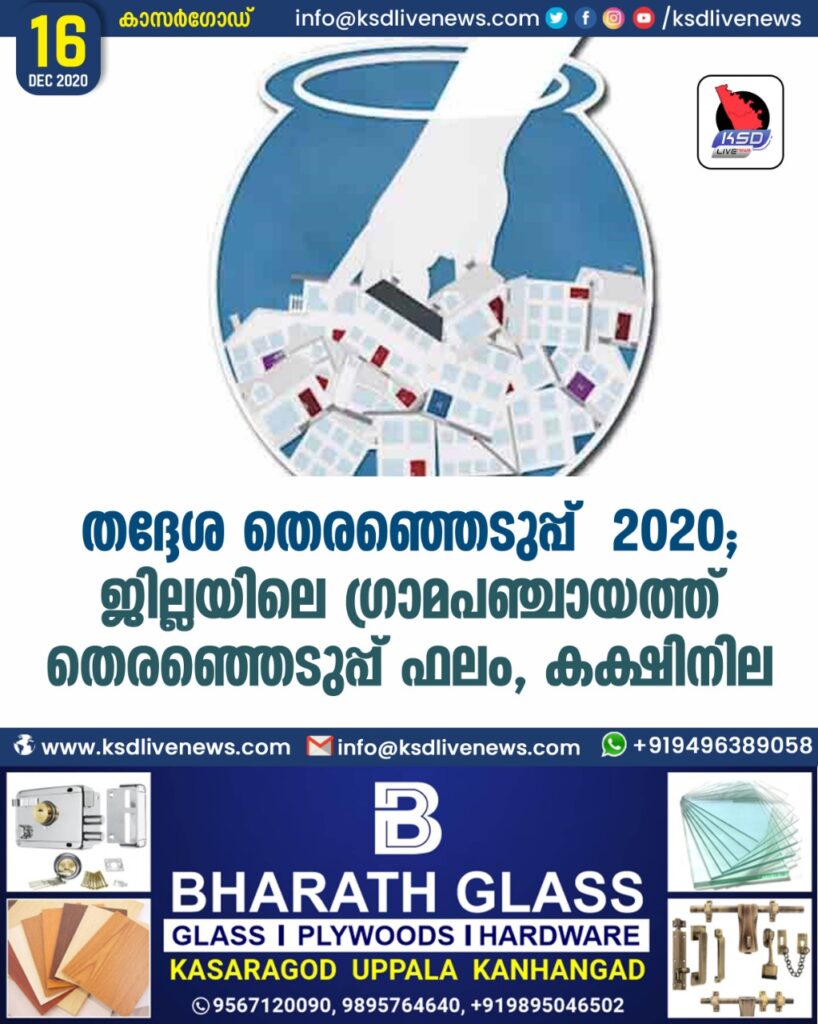തദ്ദേശ തെരഞ്ഞെടുപ്പ് 2020 ; ജില്ലയിലെ ഗ്രാമപഞ്ചായത്ത് തെരഞ്ഞെടുപ്പ് ഫലം , കക്ഷിനില