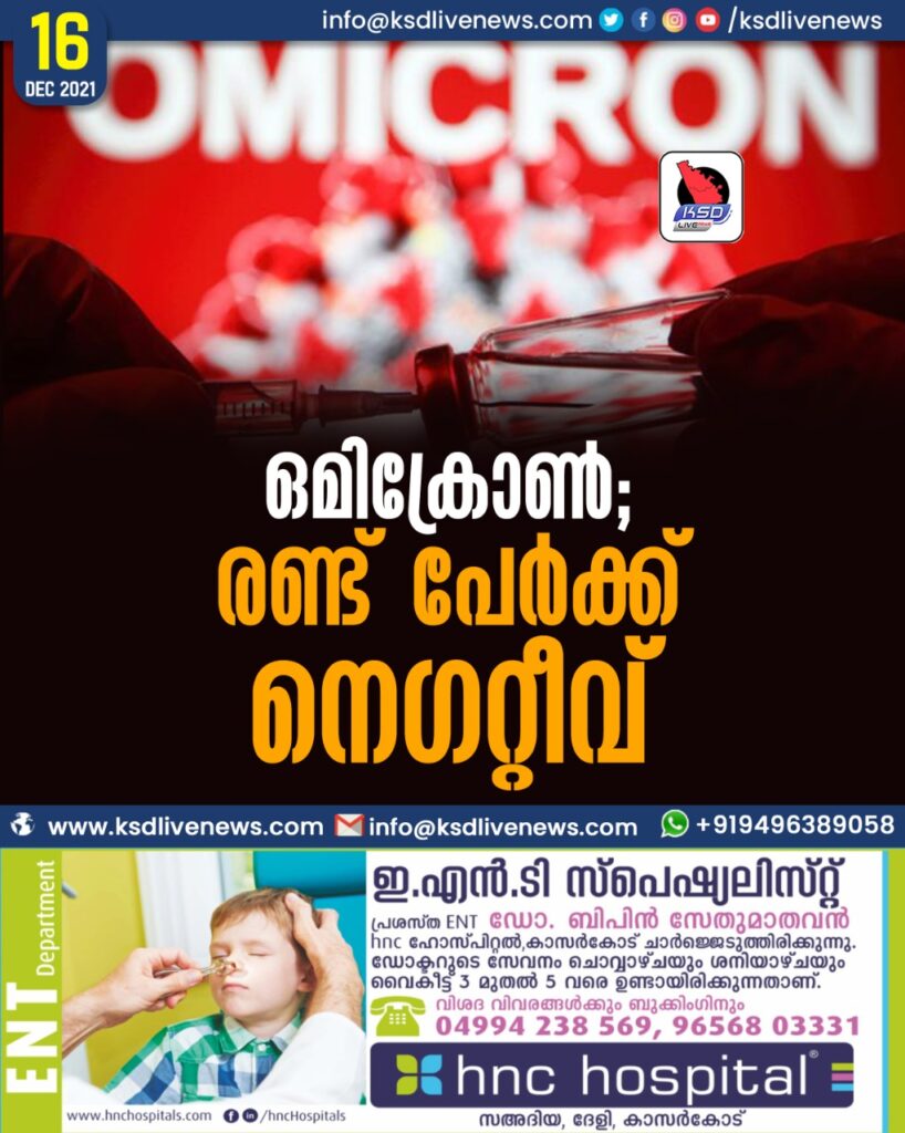 ഒമിക്രോണ്‍; രണ്ട് പേര്‍ക്ക് നെഗറ്റീവ്