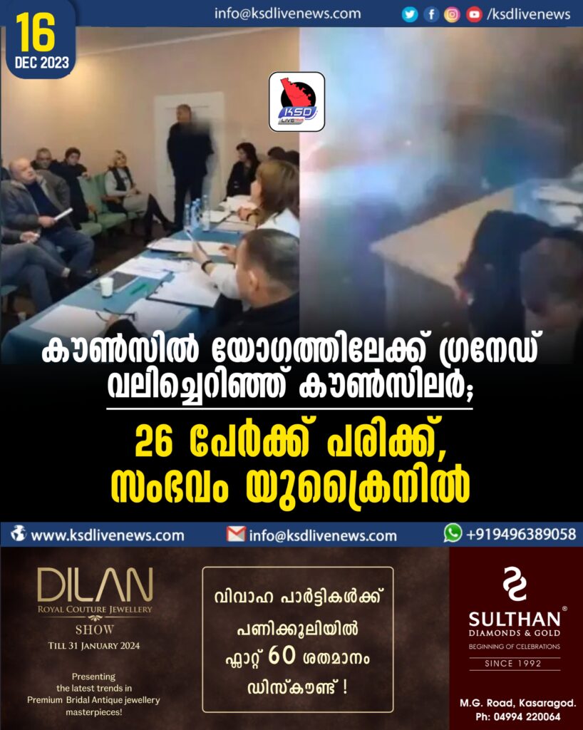 കൗണ്‍സില്‍ യോഗത്തിലേക്ക് ഗ്രനേഡ് വലിച്ചെറിഞ്ഞ് കൗണ്‍സിലര്‍; 26 പേര്‍ക്ക് പരിക്ക്, സംഭവം യുക്രൈനില്‍-video