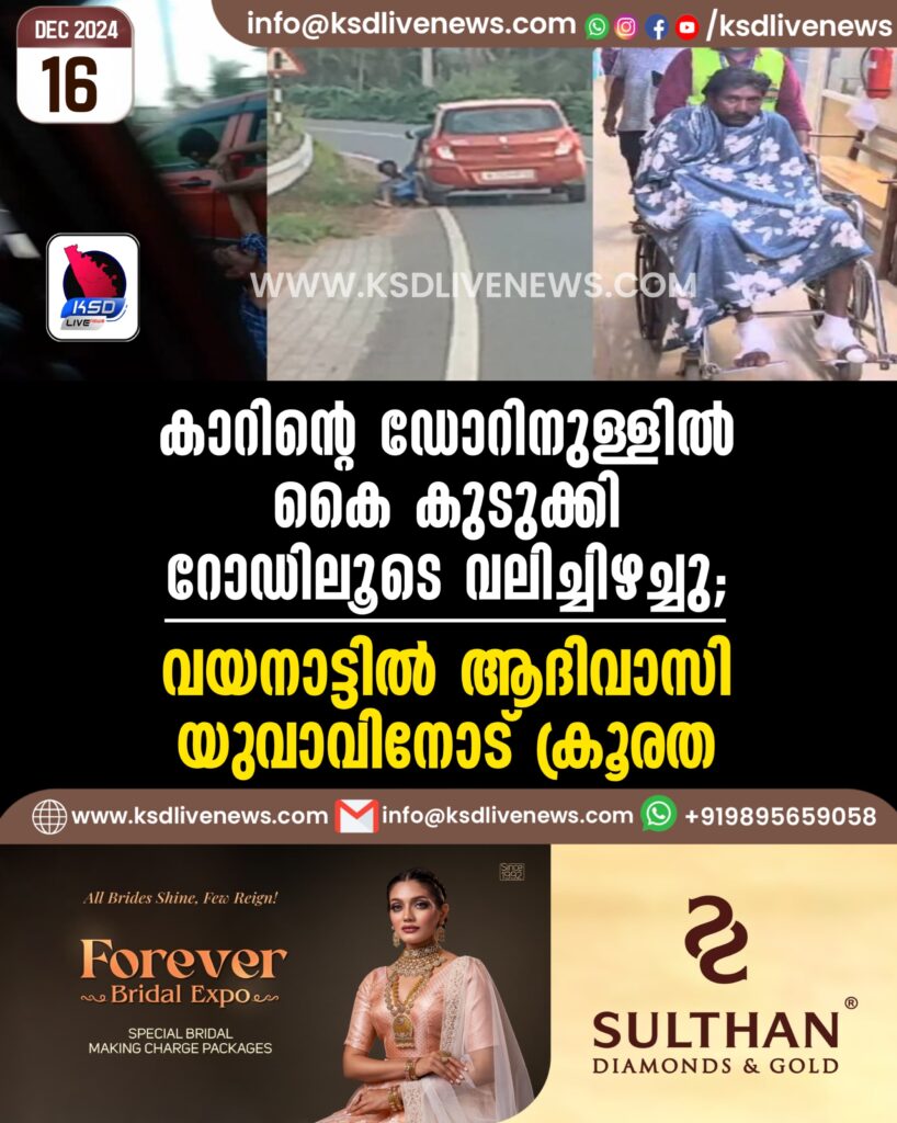കാറിന്റെ ഡോറിനുള്ളിൽ കൈ കുടുക്കി റോഡിലൂടെ വലിച്ചിഴച്ചു; വയനാട്ടിൽ ആദിവാസി യുവാവിനോട് ക്രൂരത