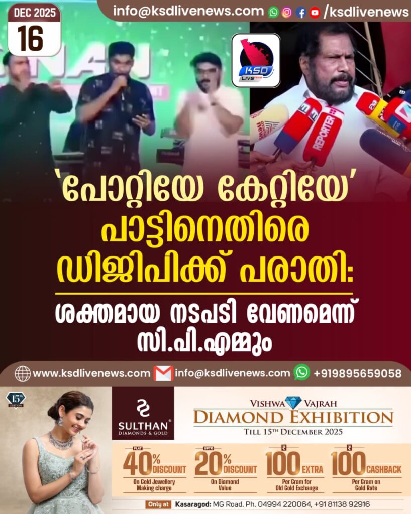 പോറ്റിയേ കേറ്റിയേ’ പാട്ടിനെതിരെ ഡിജിപിക്ക് പരാതി: ശക്തമായ നടപടി വേണമെന്ന് സി.പി.എമ്മും