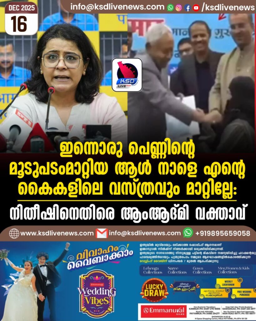 ഇന്നൊരു പെണ്ണിന്റെ മൂടുപടം മാറ്റിയ ആൾ നാളെ എന്റെ കൈകളിലെ വസ്ത്രവും മാറ്റില്ലേ; നിതീഷിനെതിരെ ആംആദ്മി വക്താവ്