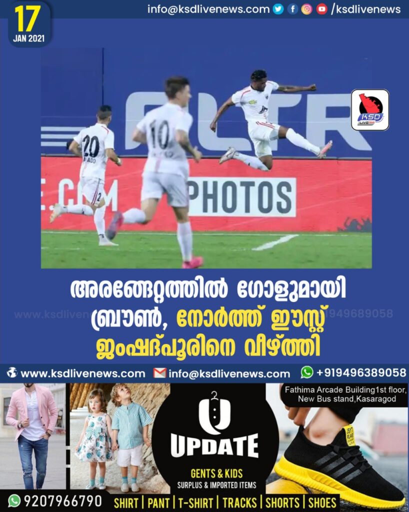 അരങ്ങേറ്റത്തിൽ ഗോളുമായി ബ്രൗൺ , നോർത്ത് ഈസ്റ്റ് ജംഷദ്പൂരിനെ വീഴ്ത്തി