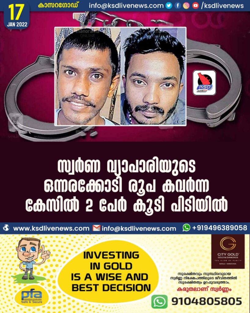 സ്വർണ വ്യാപാരിയുടെ ഒന്നരക്കോടി രൂപ കവർന്ന കേസിൽ 2 പേർ കൂടി പിടിയിൽ