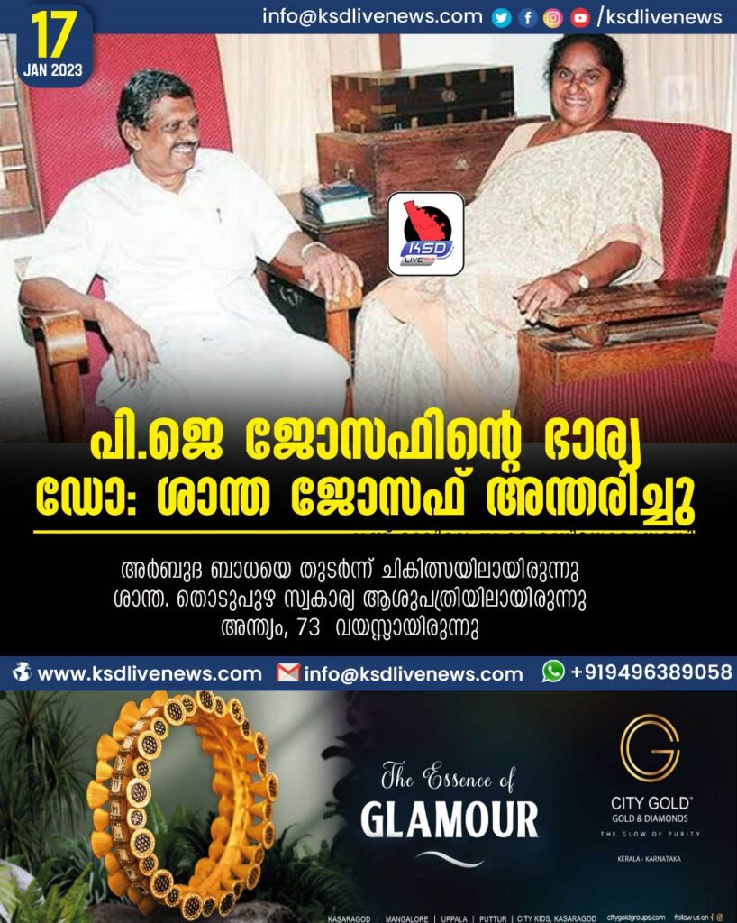 പി.ജെ ജോസഫിന്റെ ഭാര്യ ഡോ. ശാന്ത ജോസഫ് അന്തരിച്ചു