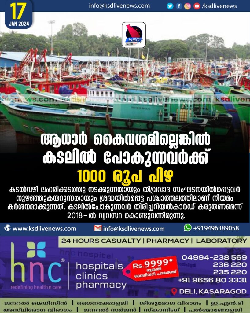 ആധാര് കൈവശമില്ലെങ്കില് കടലില് പോകുന്നവര്ക്ക് 1000 രൂപ പിഴ