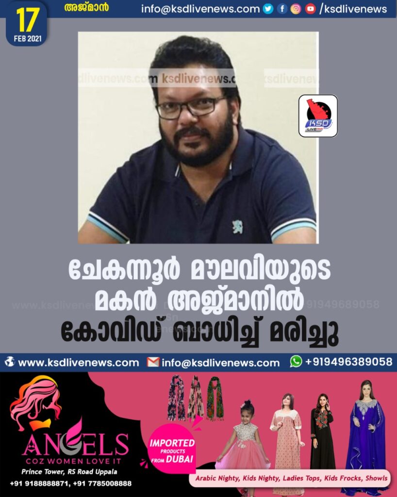 ചേകന്നൂർ മൗലവിയുടെ മകൻ അജ്മാനിൽ കോവിഡ് ബാധിച്ച് മരിച്ചു