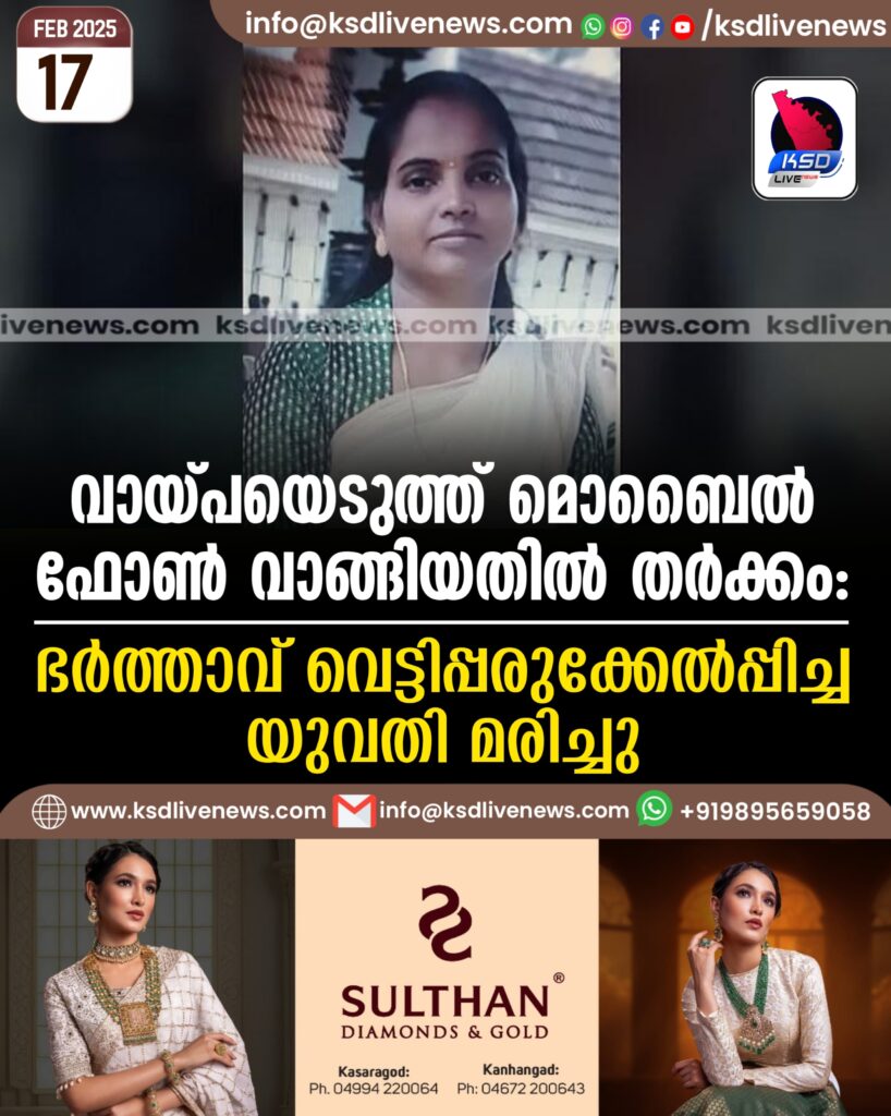 വായ്പയെടുത്ത് മൊബൈല് ഫോണ് വാങ്ങിയതില് തര്ക്കം; ഭര്ത്താവ് വെട്ടിപ്പരുക്കേല്പ്പിച്ച യുവതി മരിച്ചു