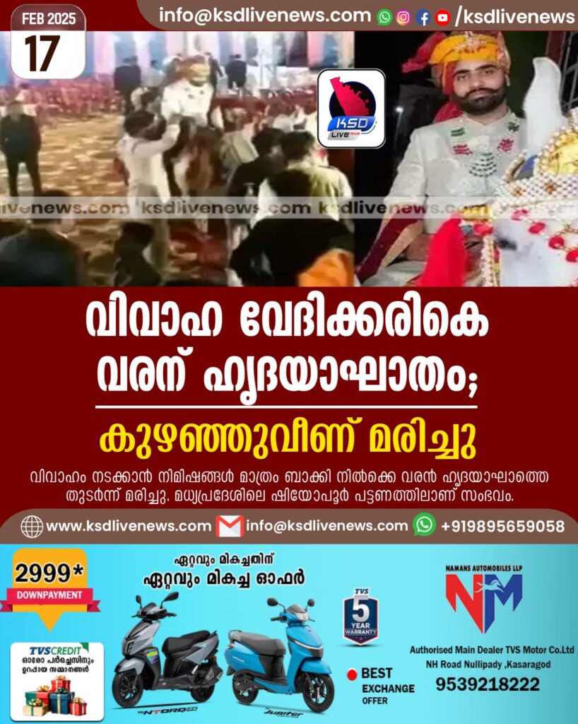 വിവാഹ വേദിക്കരികെ വരന് ഹൃദയാഘാതം; കുഴഞ്ഞുവീണ് മരിച്ചു