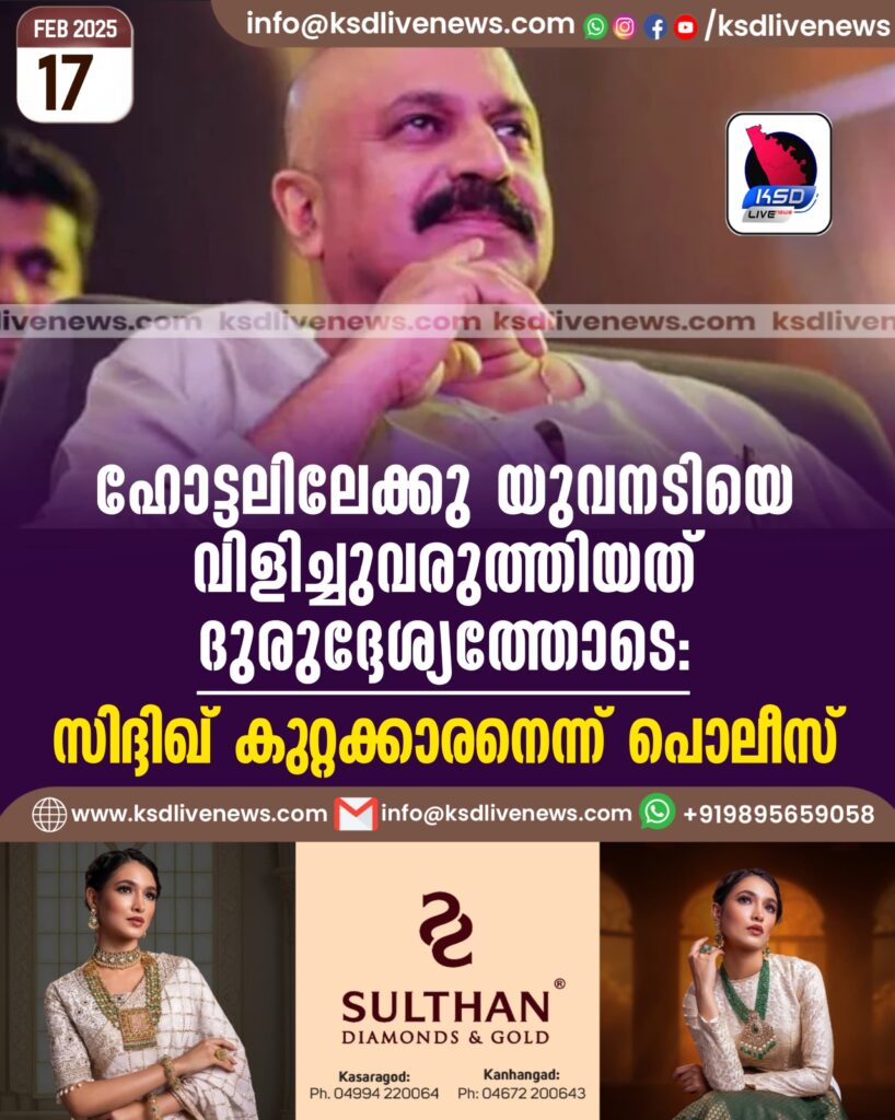 ഹോട്ടലിലേക്കു യുവനടിയെ വിളിച്ചുവരുത്തിയത് ദുരുദ്ദേശ്യത്തോടെ: സിദ്ദിഖ് കുറ്റക്കാരനെന്ന് പൊലീസ്