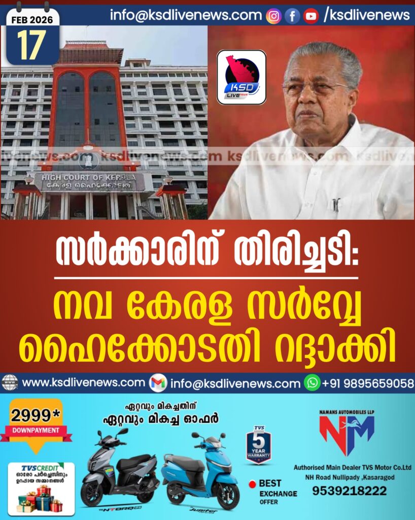 സര്‍ക്കാരിന് തിരിച്ചടി; നവ കേരള സര്‍വ്വേ ഹൈക്കോടതി റദ്ദാക്കി