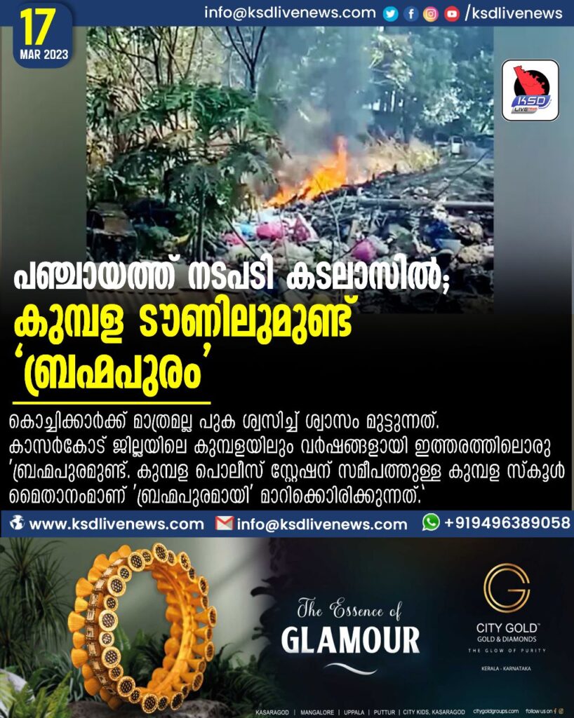 പഞ്ചായത്ത് നടപടി കടലാസിൽ; കുമ്പള ടൗണിലുമുണ്ട് ‘ബ്രഹ്മപുരം