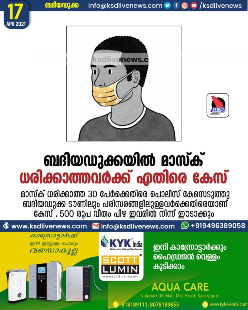 ബദിയഡുക്കയിൽ മാസ്ക് ധരിക്കാത്തവർക്ക് എതിരെ കേസ്