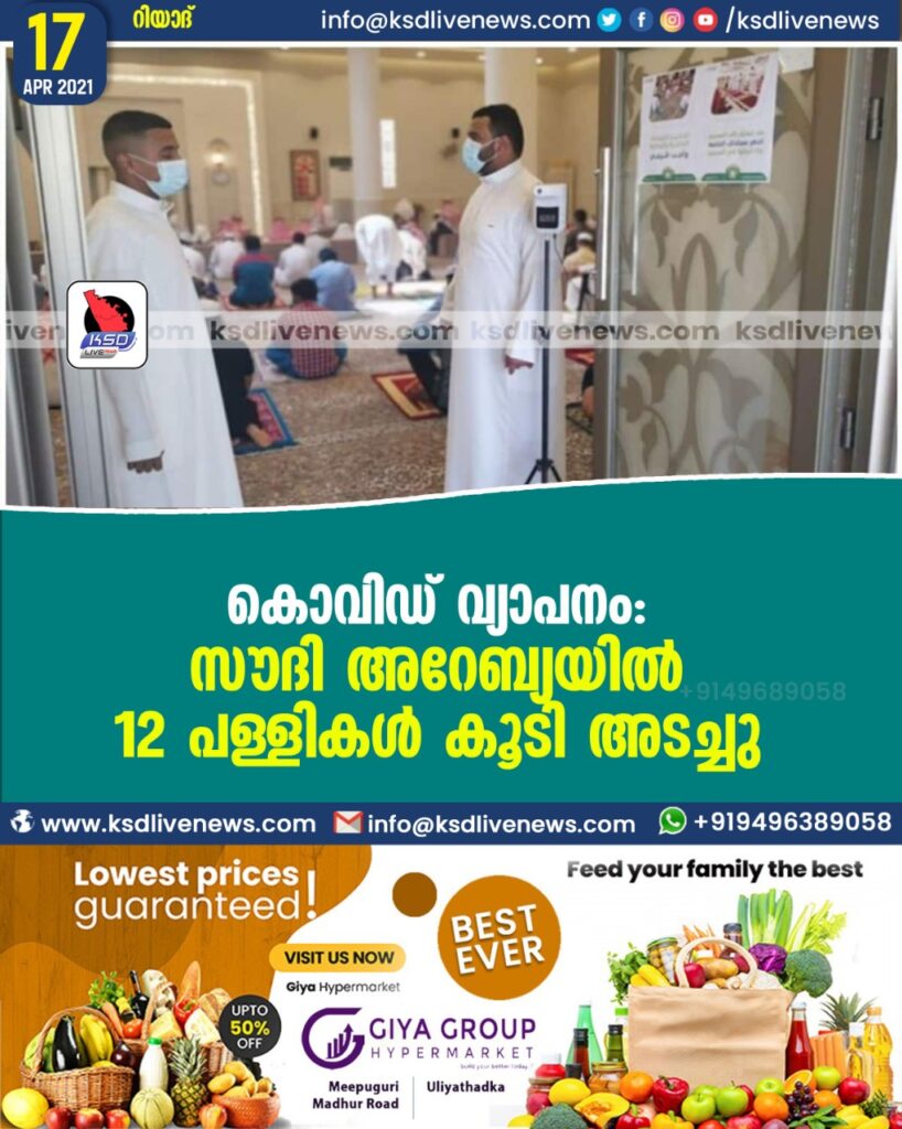 കൊവിഡ് വ്യാപനം: സൗദി അറേബ്യയില് 12 പള്ളികള് കൂടി അടച്ചു