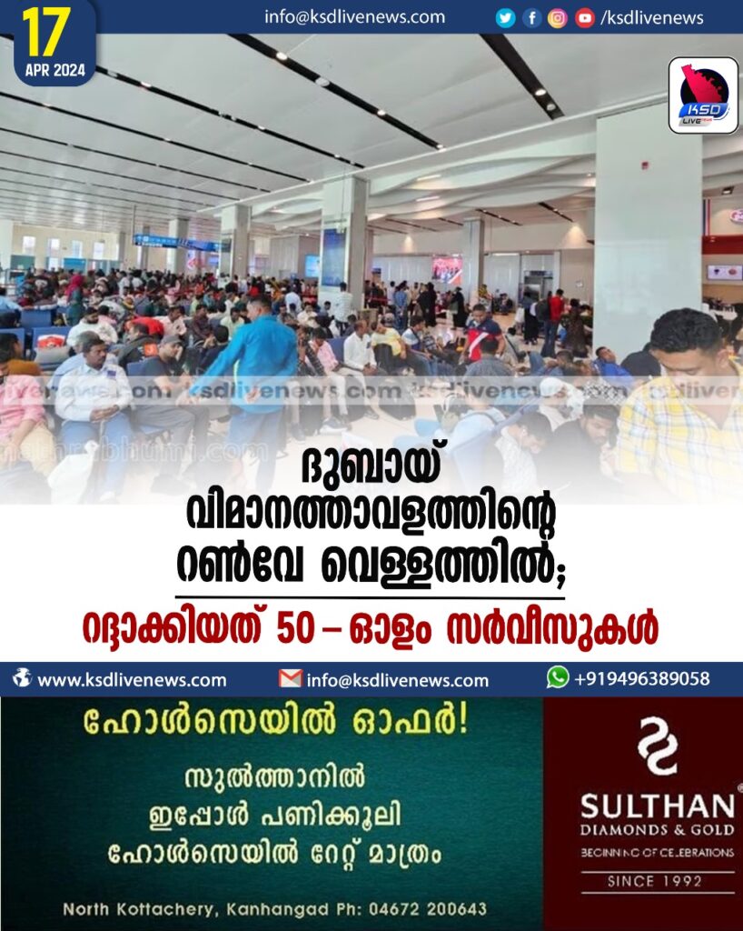 ദുബായ് വിമാനത്താവളത്തിന്റെ റണ്‍വേ വെള്ളത്തില്‍; റദ്ദാക്കിയത് 50-ഓളം സര്‍വീസുകള്‍