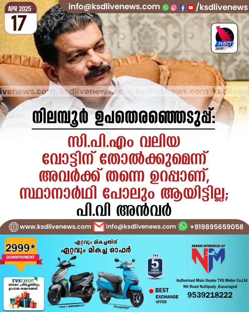 നിലമ്പൂർ ഉപതെരഞ്ഞെടുപ്പ്: സിപിഎം വലിയ വോട്ടിന് തോൽക്കുമെന്ന് അവർക്ക് തന്നെ ഉറപ്പാണ്, സ്ഥാനാർഥി പോലും ആയിട്ടില്ല; പി.വി അൻവർ