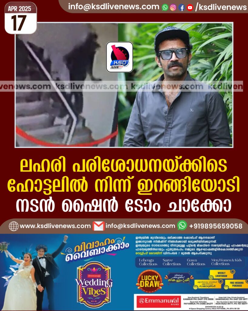ലഹരി പരിശോധനയ്ക്കിടെ ഹോട്ടലില് നിന്ന് ഇറങ്ങിയോടി നടൻ ഷൈന് ടോം ചാക്കോ