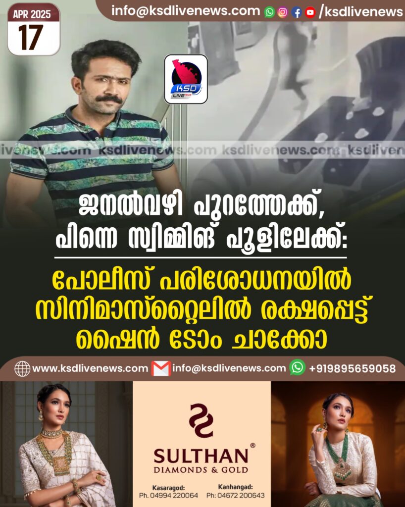 ജനൽവഴി പുറത്തേക്ക്, പിന്നെ സ്വിമ്മിങ് പൂളിലേക്ക്;പോലീസ് പരിശോധനയിൽ സിനിമാസ്റ്റൈലിൽ രക്ഷപ്പെട്ട് ഷൈൻ ടോം ചാക്കോ