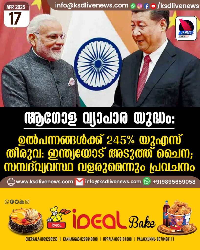 ആഗോള വ്യാപാര യുദ്ധം: ഉൽപന്നങ്ങൾക്ക് 245% യുഎസ് തീരുവ: ഇന്ത്യയോട് അടുത്ത് ചൈന; സമ്പദ്വ്യവസ്ഥ വളരുമെന്നും പ്രവചനം