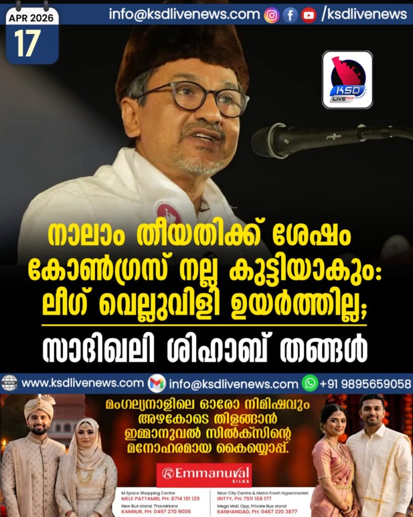 നാലാം തീയതിക്ക് ശേഷം കോൺഗ്രസ് നല്ല കുട്ടിയാകും, ലീഗ് വെല്ലുവിളി ഉയർത്തില്ല-സാദിഖലി ശിഹാബ് തങ്ങൾ
