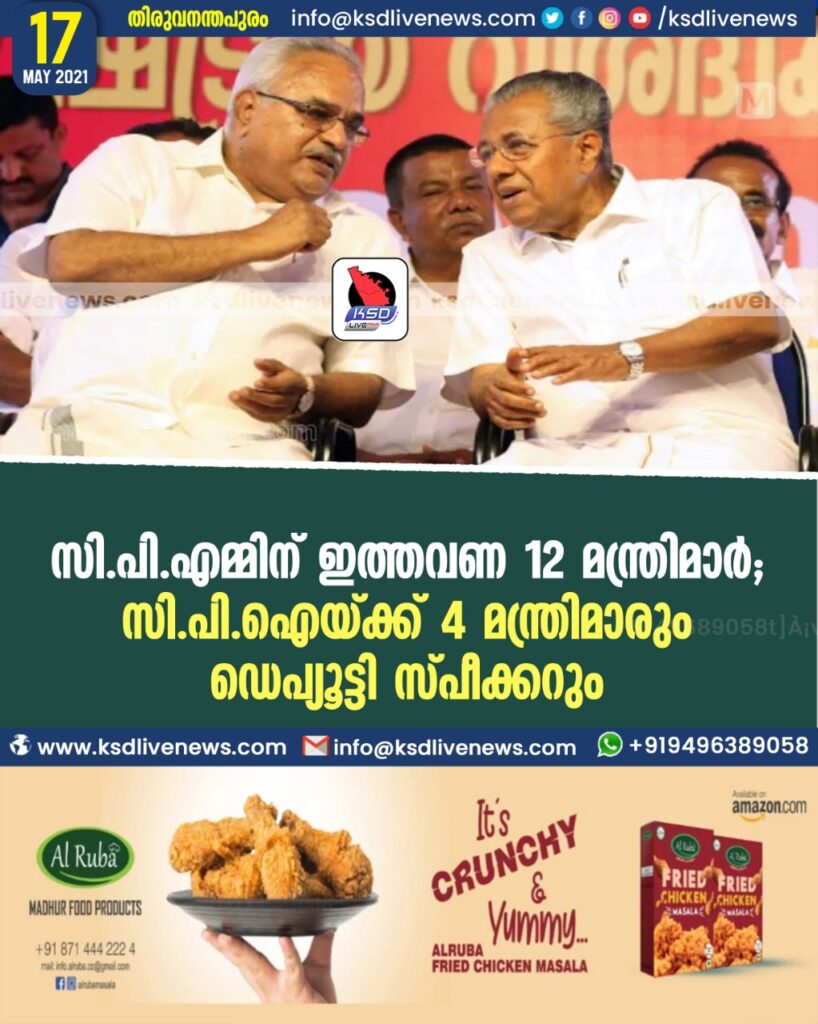 സി.പി.എമ്മിന് ഇത്തവണ 12 മന്ത്രിമാര്; സി.പി.ഐയ്ക്ക് 4 മന്ത്രിമാരും ഡെപ്യൂട്ടി സ്പീക്കറും