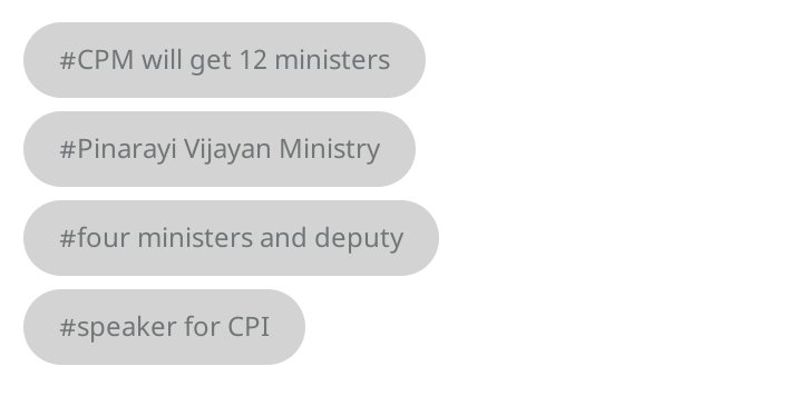 കഴിഞ്ഞ തവണ സി.പി.എം. കൈവശം വെച്ചിരുന്ന വകുപ്പുകളിലൊന്ന് ഇത്തവണ കേരള കോൺഗ്രസ് എമ്മിന് നൽകും. വൈദ്യുതി വകുപ്പ് നൽകിയേക്കുമെന്നാണ് നിലവിൽ ലഭിക്കുന്ന സൂചനകൾ. റോഷി അഗസ്റ്റിനാകും മന്ത്രിയാകുക. മറ്റൊരു എം.എൽ.എ. എൻ.ജയരാജിന് ചീഫ് വിപ്പ് സ്ഥാനം ലഭിച്ചേക്കും.