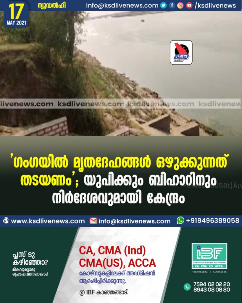 ‘ഗംഗയില്‍ മൃതദേഹങ്ങള്‍ ഒഴുക്കുന്നത് തടയണം’; യുപിക്കും ബിഹാറിനും നിര്‍ദേശവുമായി കേന്ദ്രം