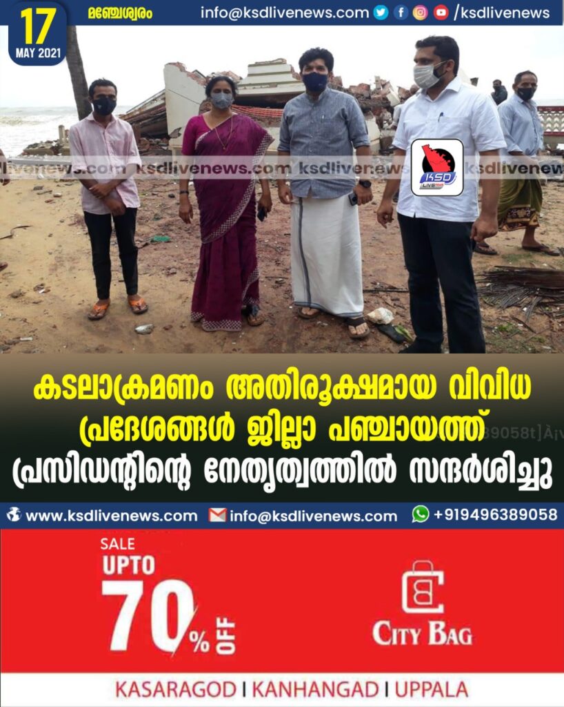 കടലാക്രമണം അതിരൂക്ഷം വിവിധ പ്രദേശങ്ങൾ ജില്ലാ പഞ്ചായത്ത് പ്രസിഡന്റ് സന്ദർശിച്ചു.