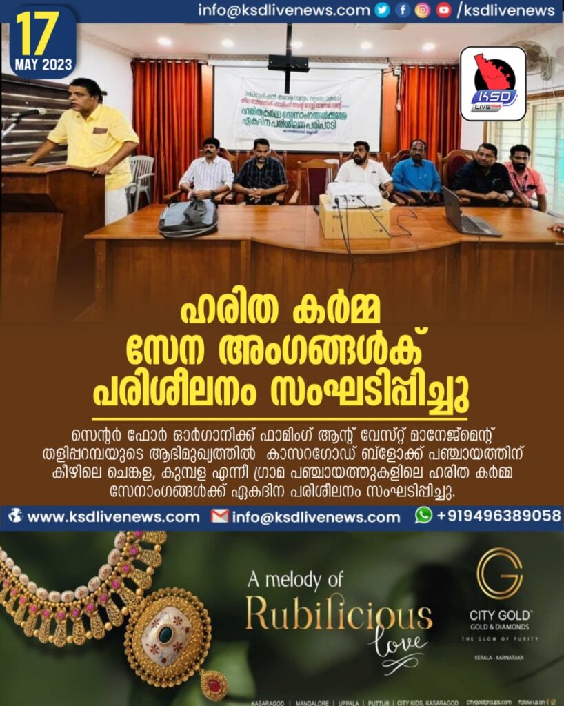 സെന്റർ ഫോർ ഓർഗാനിക്ക് ഫാമിംഗ് ആന്റ് വേസ്റ്റ് മാനേജ്മെന്റ് തളിപ്പറമ്പയുടെ ആഭിമുഖ്യത്തിൽ കാസറഗോഡ് ബ്ളോക്ക് പഞ്ചായത്തിന് കീഴിലെ ചെങ്കള, കുമ്പള എന്നീ ഗ്രാമ പഞ്ചായത്തുകളിലെ ഹരിത കർമ്മ സേനാംഗങ്ങൾക്ക് ഏകദിന പരിശീലനം സംഘടിപ്പിച്ചു.