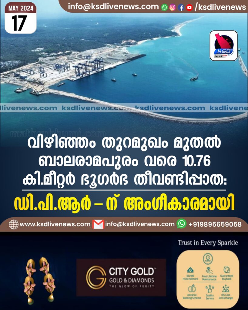 വിഴിഞ്ഞം തുറമുഖം മുതൽ ബാലരാമപുരം വരെ 10.76 കി.മീറ്റർ ഭൂഗർഭ തീവണ്ടിപ്പാത: ഡി.പി.ആർ-ന് അംഗീകാരമായി