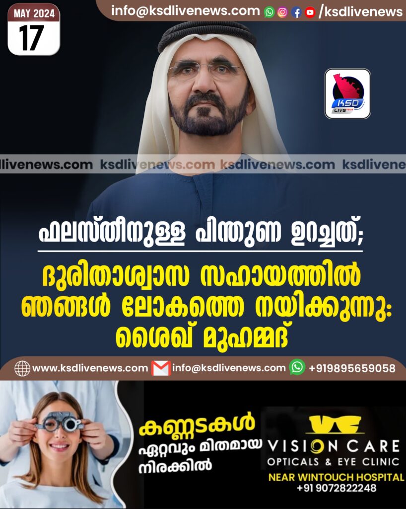 ഫലസ്തീനുള്ള പിന്തുണ ഉറച്ചത്; ദുരിതാശ്വാസ സഹായത്തില് ഞങ്ങള് ലോകത്തെ നയിക്കുന്നു: ശൈഖ് മുഹമ്മദ്