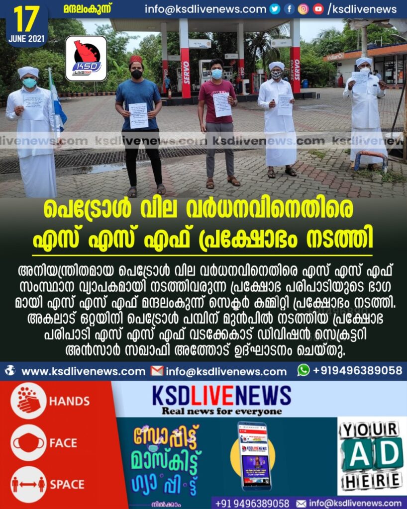 പെട്രോൾ വില വർധനവിനെതിരെ എസ് എസ് എഫ് പ്രക്ഷോഭം നടത്തി