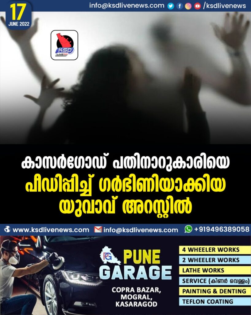 കാസര്ഗോഡ് പതിനാറുകാരിയെ പീഡിപ്പിച്ച് ഗര്ഭിണിയാക്കിയ യുവാവ് അറസ്റ്റില്