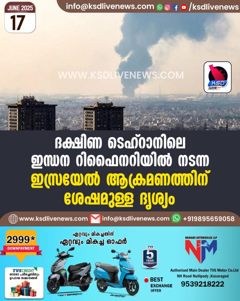 ദക്ഷിണ ടെഹ്റാനിലെ ഇന്ധന റിഫൈനറിയിൽ നടന്ന ഇസ്രയേൽ ആക്രമണത്തിന് ശേഷമുള്ള ദൃശ്യം