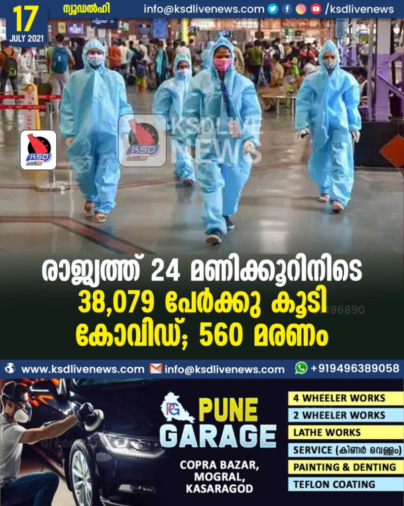 രാജ്യത്ത് 24 മണിക്കൂറിനിടെ 38,079 പേര്ക്കു കൂടി കോവിഡ്; 560 മരണം