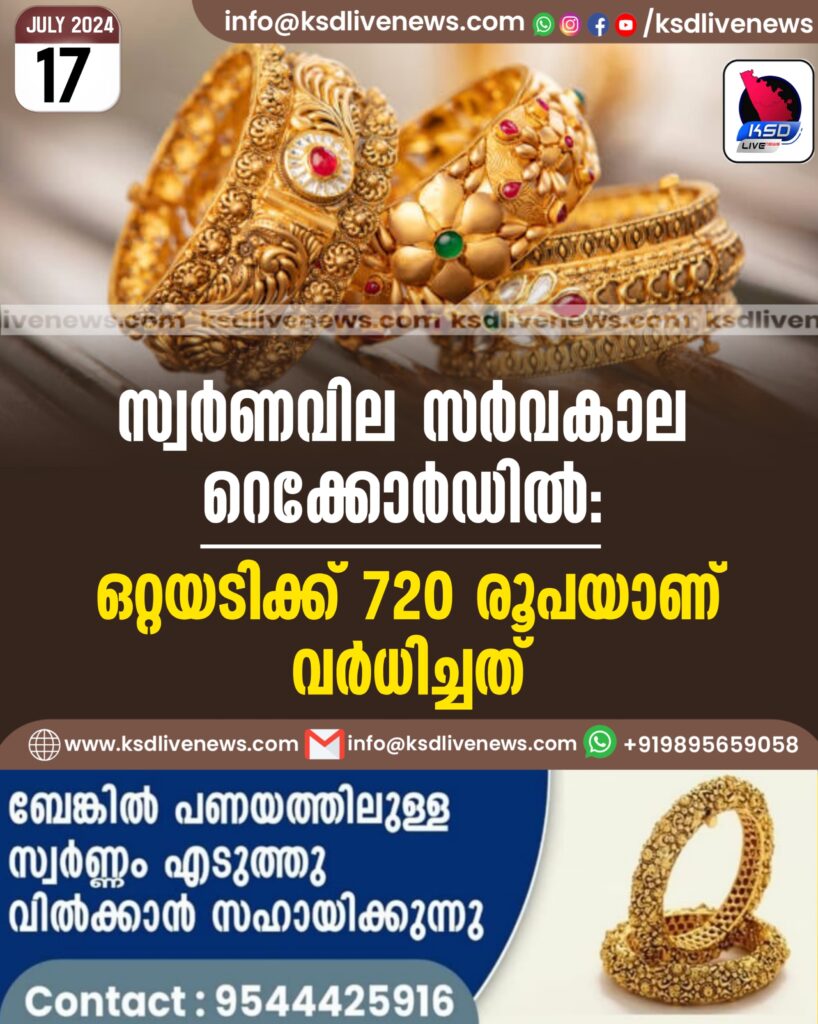 സ്വര്ണവില സര്വകാല റെക്കോര്ഡില്; ഒറ്റയടിക്ക് 720 രൂപയാണ് വര്ധിച്ചത്