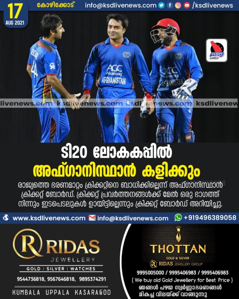 അഫ്ഗാനിസ്ഥാന്‍റെ പ്രധാന കളിക്കാരായ റാഷിദ് ഖാനും മുഹമ്മദ് നബിയും രാജ്യത്തില്ല. റാഷീദ് ഖാന്‍ ഇംഗ്ലണ്ടിലാണ്. എന്നാല്‍ അദ്ദേഹത്തിന്‍റെ കുടുംബം കാബൂളില്‍ കുടുങ്ങിയിരിക്കുകയാണ്. അതേസമയം, നബി ദുബൈയിലാണ്. അഫ്ഗാനിസ്ഥാനെ സഹായിക്കാന്‍ ലോക നേതാക്കള്‍ മുന്നോട്ട് വരണമെന്ന് ആഗസ്റ്റ് 11ന് നബി ആവശ്യപ്പെട്ടിരുന്നു. ഇരുവരും ഐപിഎല്‍ കളിക്കും. ടി20 ലോകകപ്പില്‍ ഇന്ത്യയും പാകിസ്താനും ന്യൂസിലാന്‍റും അടങ്ങുന്ന ഗ്രൂപ്പിലാണ് അഫ്ഗാനിസ്ഥാനുള്ളത്.