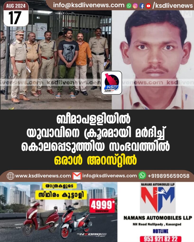 ബീമാപളളിയിൽ യുവാവിനെ ക്രൂരമായി മർദിച്ച് കൊലപ്പെടുത്തിയ സംഭവത്തിൽ ഒരാൾ അറസ്റ്റിൽ