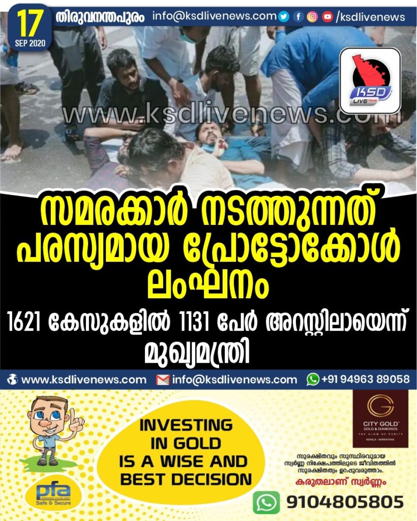 സമരക്കാർ നടത്തുന്നത് പരസ്യമായ പ്രോട്ടോക്കോൾ ലംഘനം ; 1621 കേസുകളിൽ 1131 പേർ അറസ്റ്റിലായെന്ന്