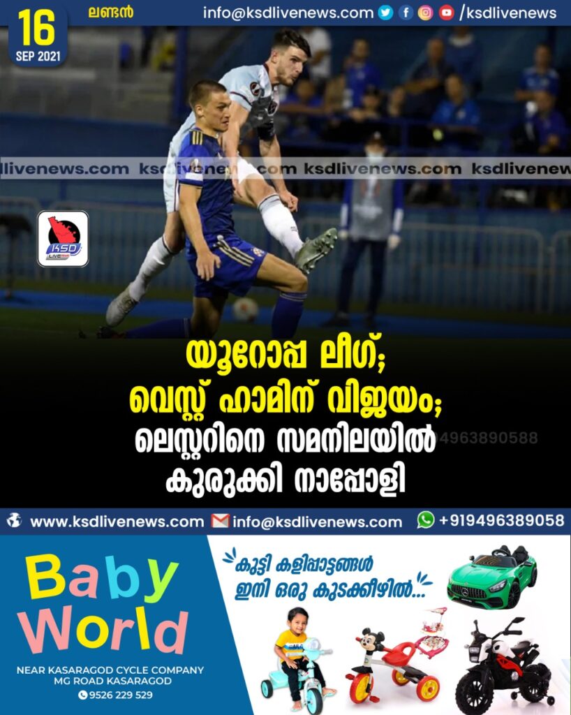 യൂറോപ്പ ലീഗ്: വെസ്റ്റ് ഹാമിന് വിജയം, ലെസ്റ്ററിനെ സമനിലയില്‍ കുരുക്കി നാപ്പോളി