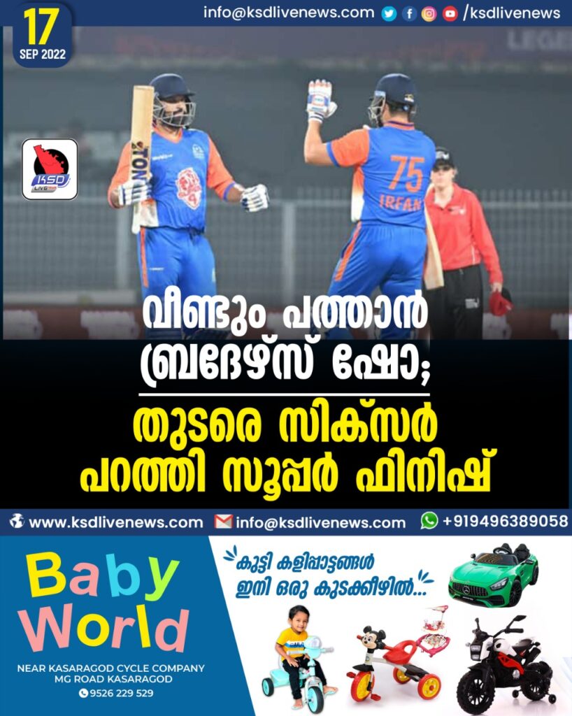 വീണ്ടും ‘പത്താന് ബ്രദേഴ്സ്’ ഷോ; തുടരെ സിക്സര് പറത്തി സൂപ്പര് ഫിനിഷ്