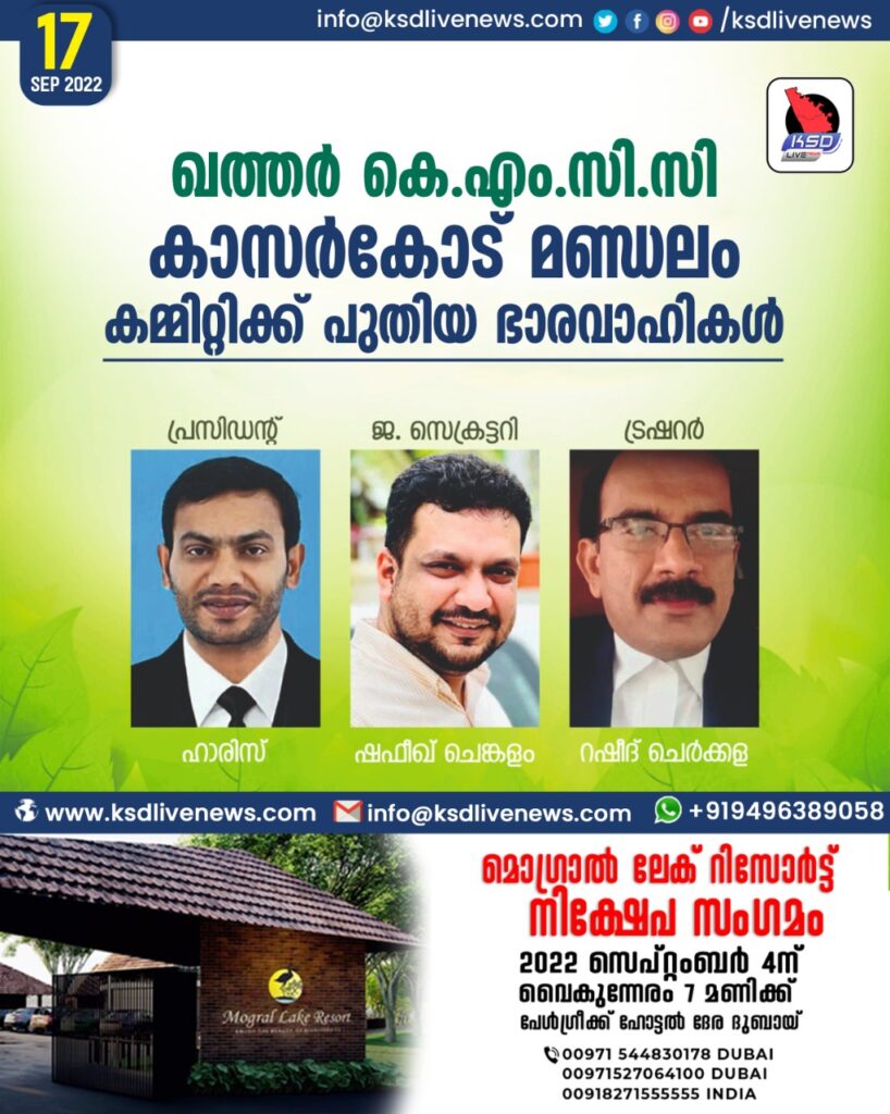 ഖത്തർ കെഎംസിസി കാസർകോട് മണ്ഡലം കമ്മിറ്റിക്ക് പുതിയ ഭാരവാഹികൾ