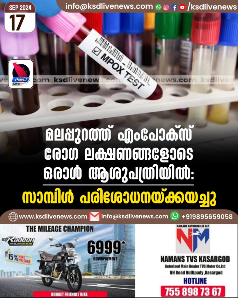 മലപ്പുറത്ത് എംപോക്സ് രോഗ ലക്ഷണങ്ങളോടെ ഒരാൾ ആശുപത്രിയിൽ, സാമ്പിൾ പരിശോധനയ്ക്കയച്ചു
